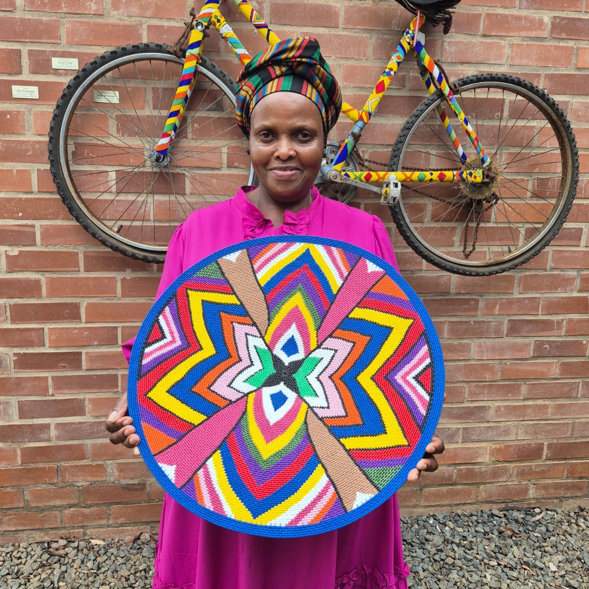 As part of the celebrated telephone-wire weaving community of Siyanda, Ntombifuthi plays an important role in maintaining and advancing a uniquely South African art form born during a time when traditional materials were scarce. Through her work, she carries forward a craft shaped by innovation, resourcefulness, and cultural memory.