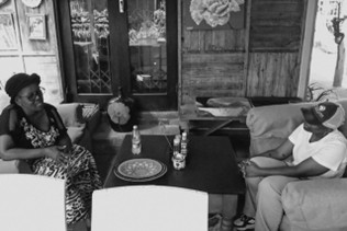 ArtBank intern Sinethemba Ndimandi interviewing hardwire basket weaver Tholakele Dlamini.