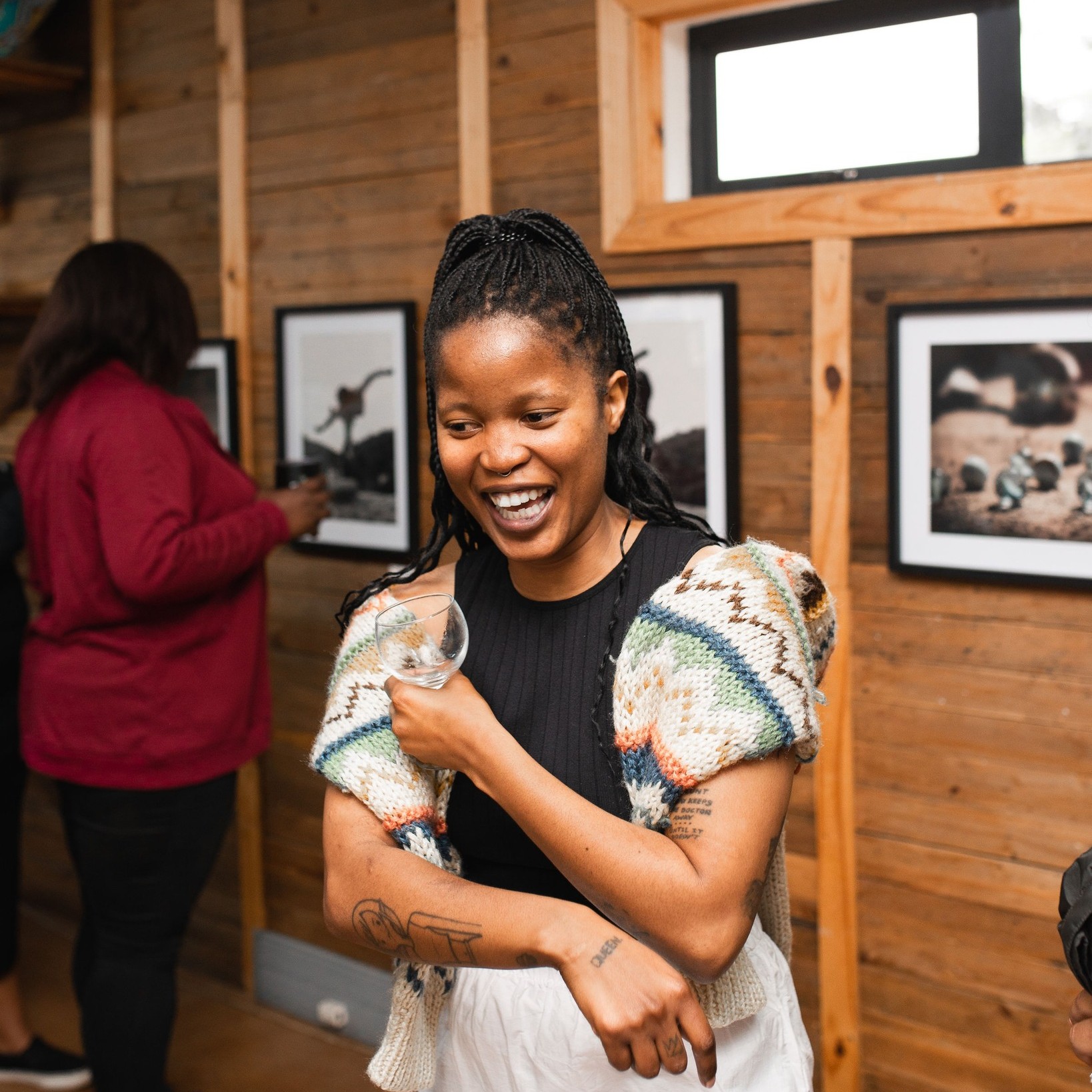 Nqobile’s huge, colourful paintings adorned with beads, are sure to captivate visitors with their boldness and intricate craftsmanship. The photographic series, which evokes nostalgia with its dark tones and depiction of childhood games familiar to South Africans. Both these works spark conversations and reflections, showcasing the artist’s attention to detail.