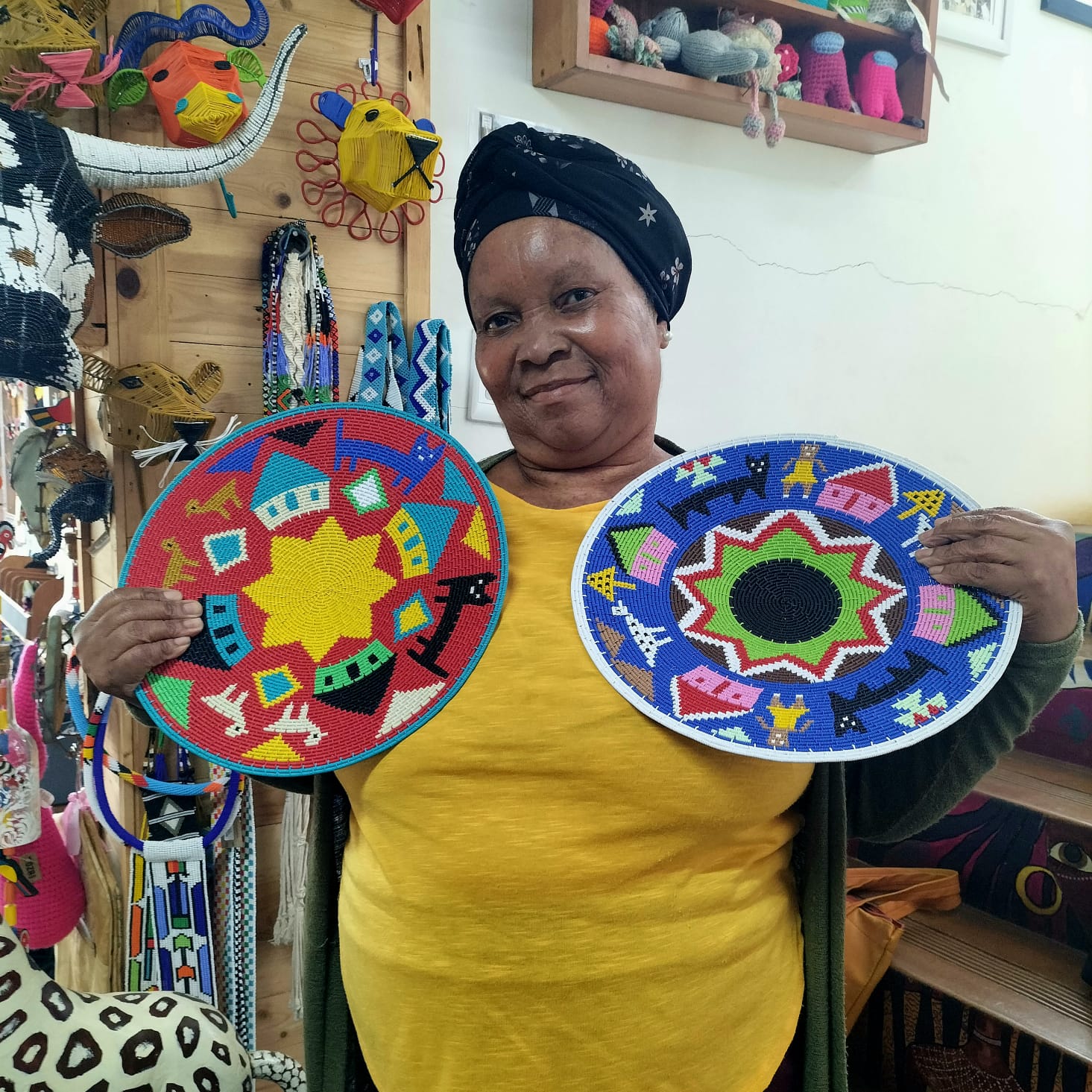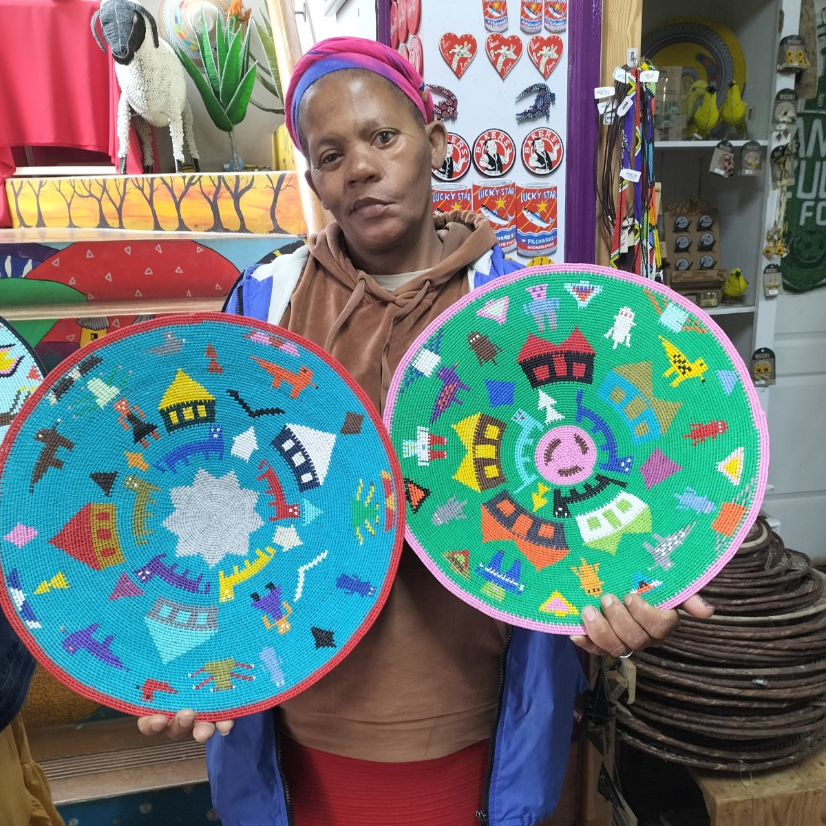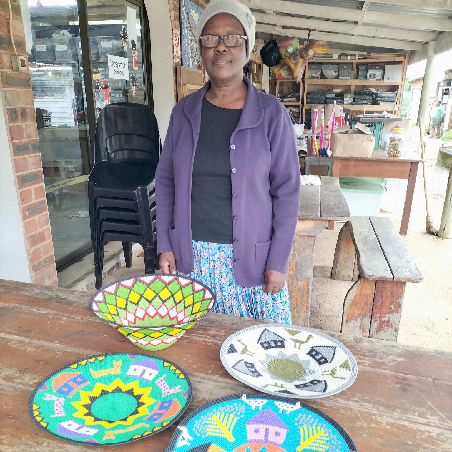Prudence first visited Woza Moya in November 2024. She is new to making hardwire bowls and is being coached by Hilda Mgaga who has been forced to stop working due to her health. Hilda is passing her skills and basket designs to Prudence.