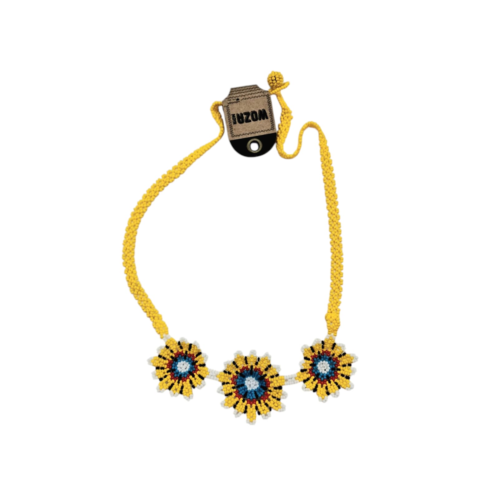 Find African Flowered necklaces at Woza Moya, they come in different colours and these colors represent Zulu culture .