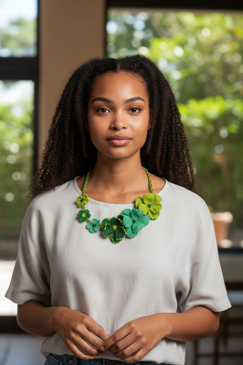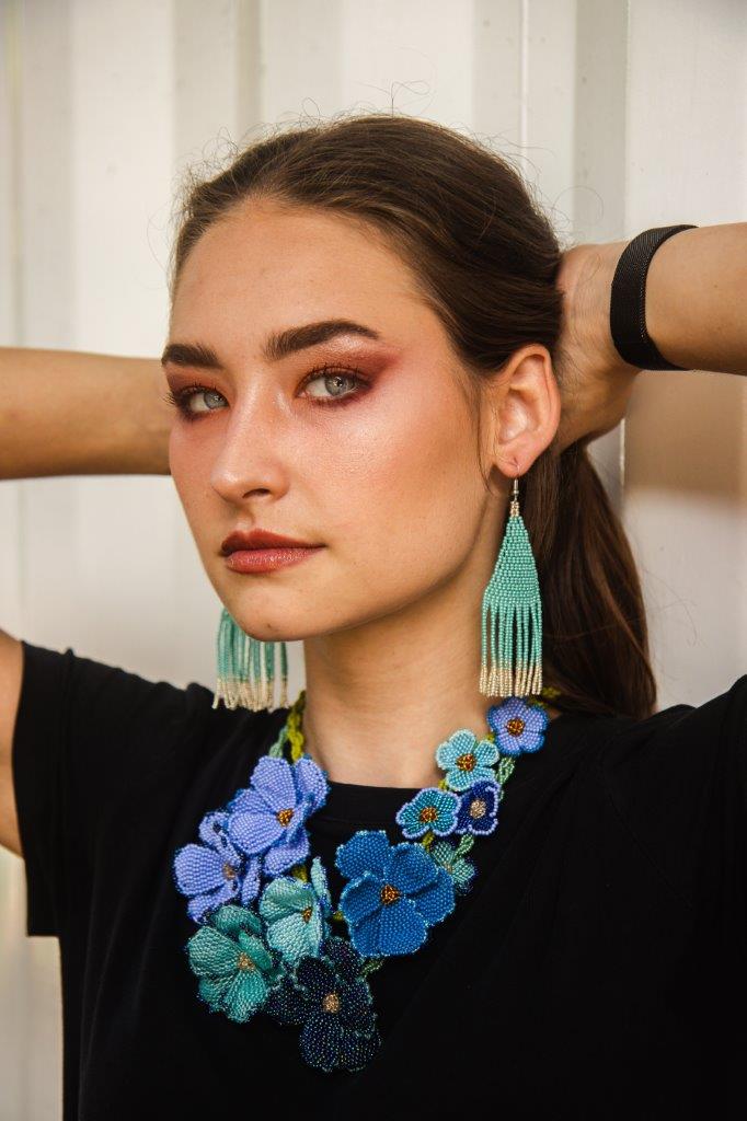 These Asymmetrical Floral Necklaces are made by Nobuhle.