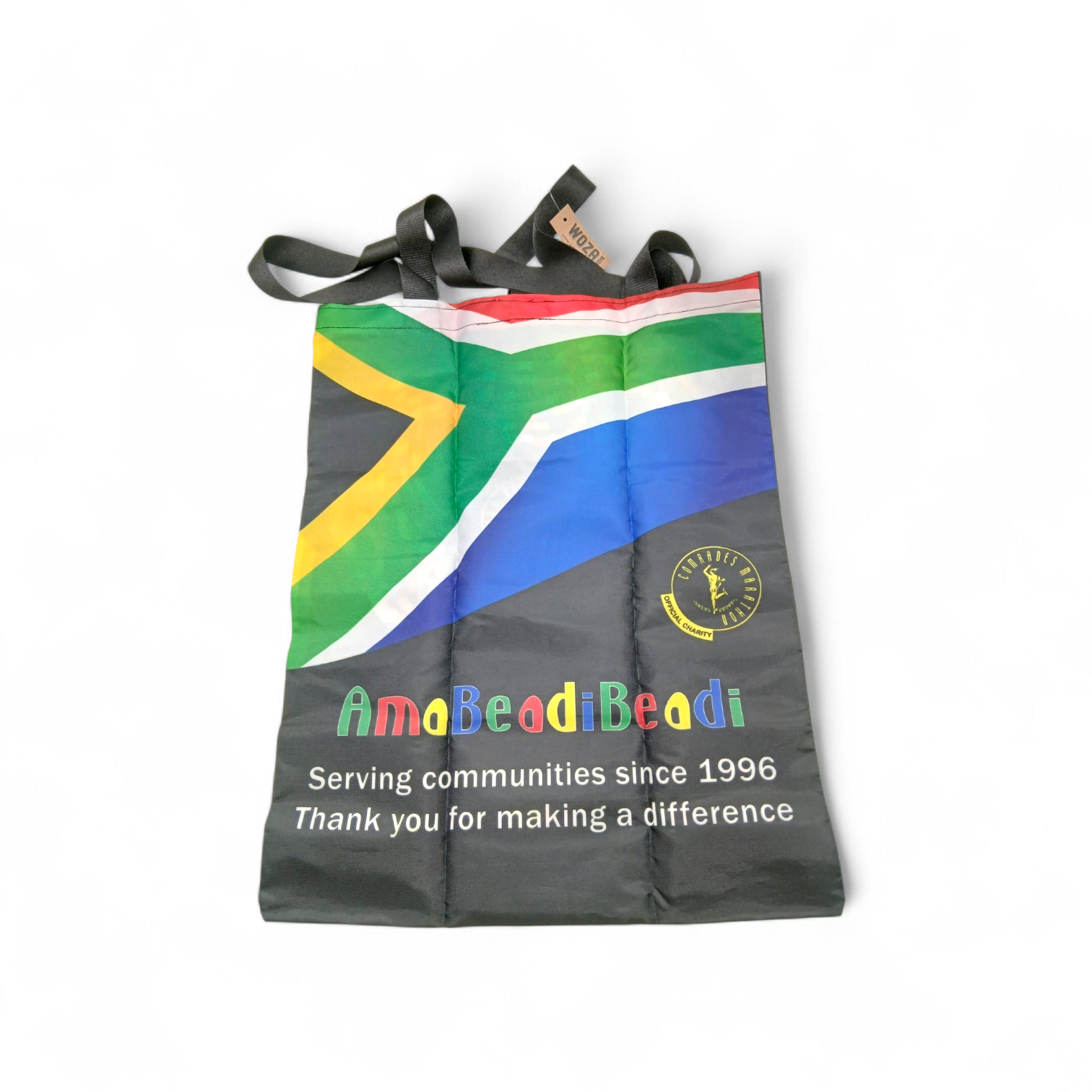 Our Comrades shopping bag is a practical and stylish essential for everyday use, designed to carry your essentials with ease while showcasing your Comrades pride. Made from durable, reusable material with strong handles for comfortable carrying, it’s perfect for race day gear, grocery runs, or daily errands. Lightweight yet sturdy, this bag is built for convenience and long-lasting use. Every purchase supports the AmaBeadibeadi Charity Drive, contributing to meaningful community upliftment initiatives and charitable causes. Carry more than just your essentials — carry the spirit of Comrades wherever you go.
