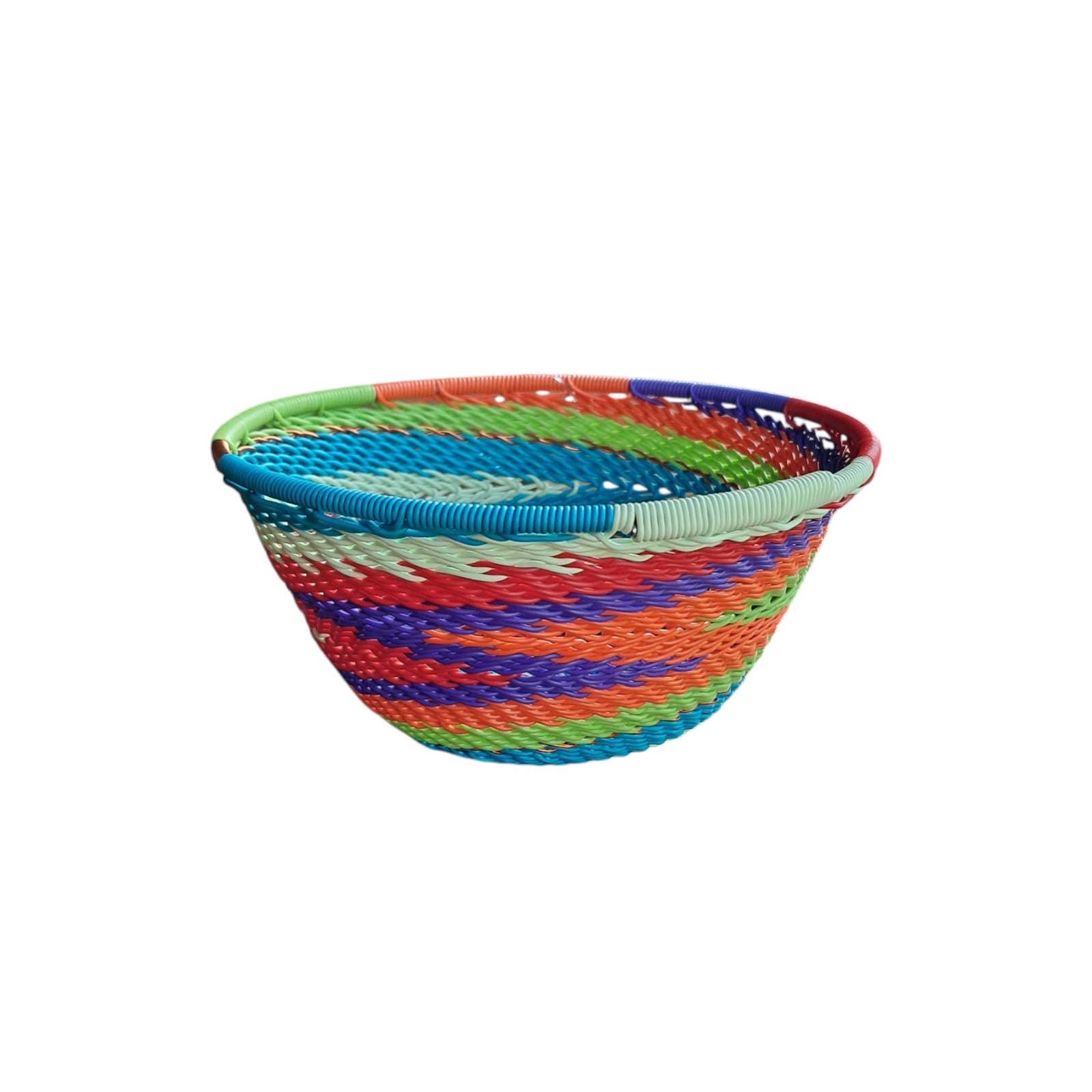 Woven telephone wire bowl in Multi colours! Approximate diameter is 11.5cm.
