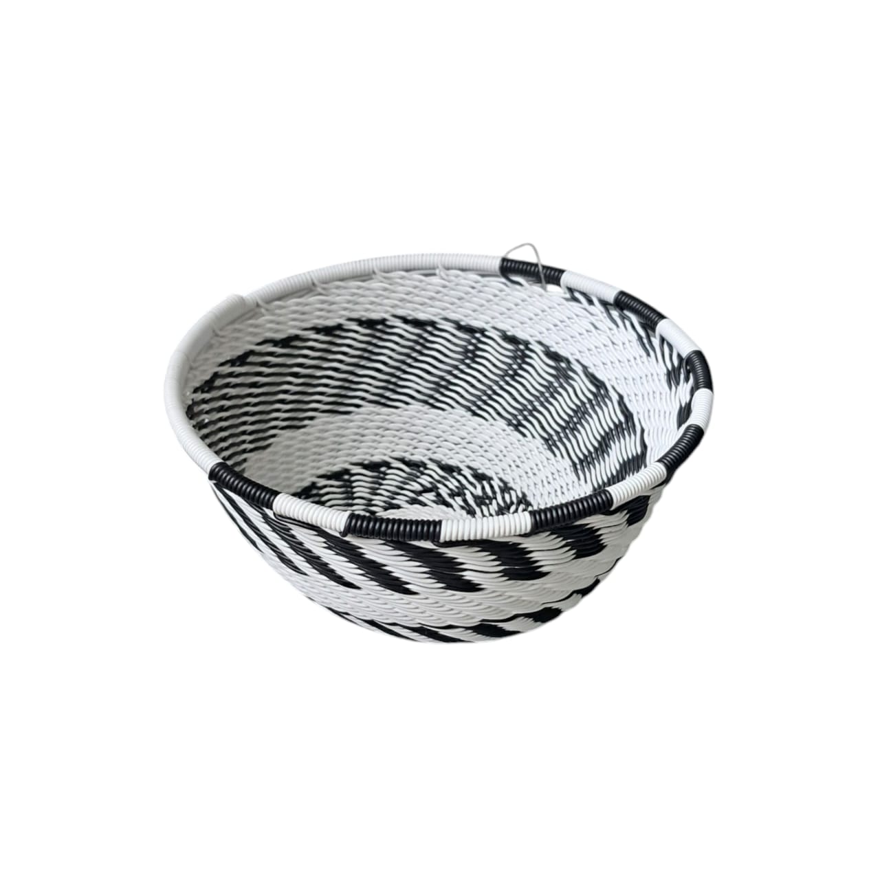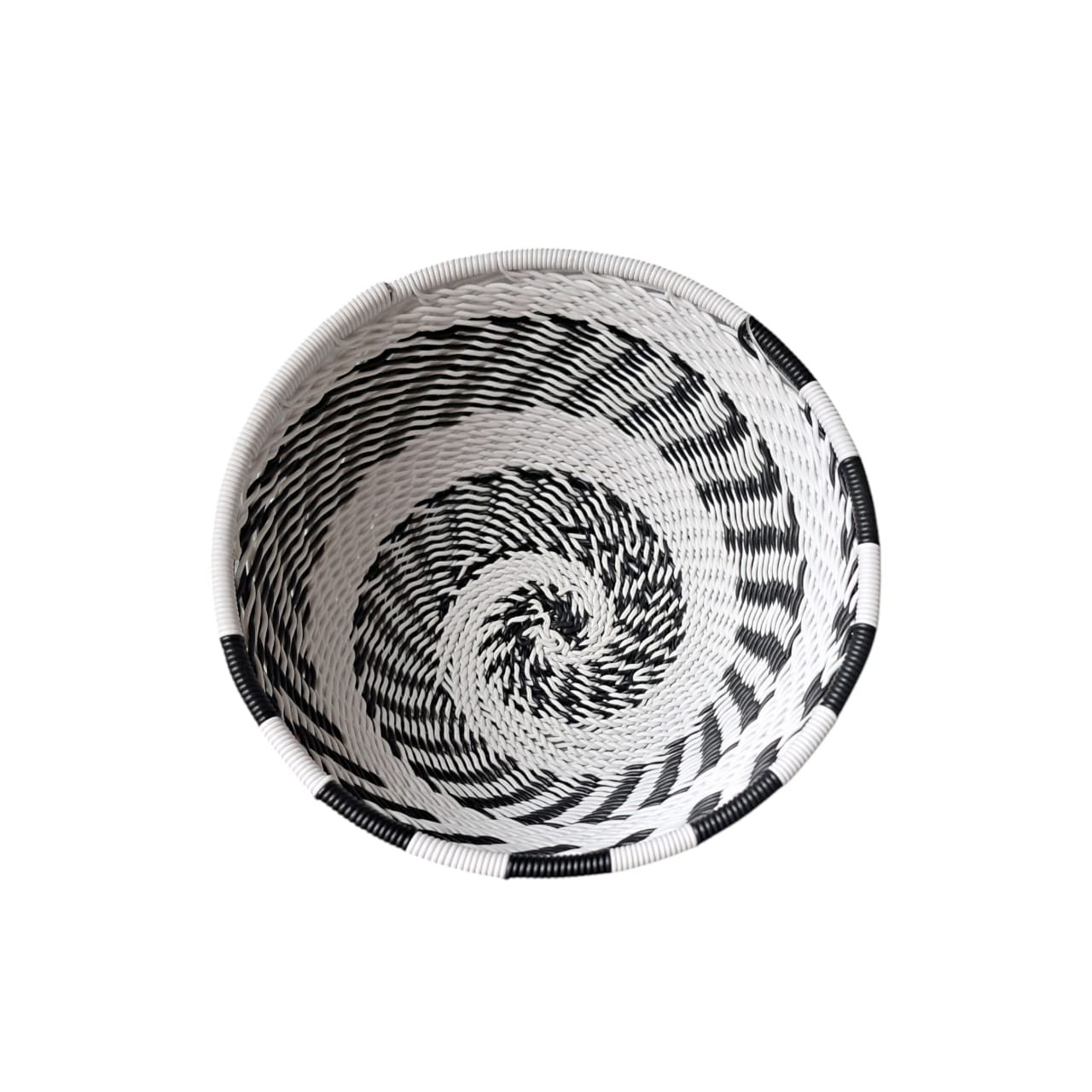 Woven telephone wire bowl in Black and White! Approximate diameter is 11.5cm.