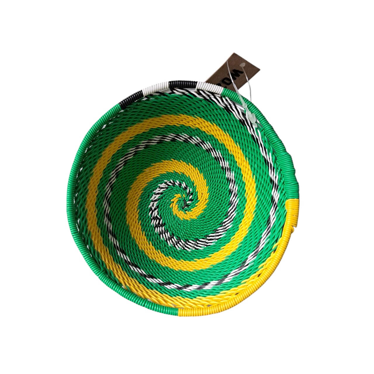 These bowls are made using traditional Zulu grass weaving techniques. The use of scoobie wire instead of grass gives them a colourful and modern look.