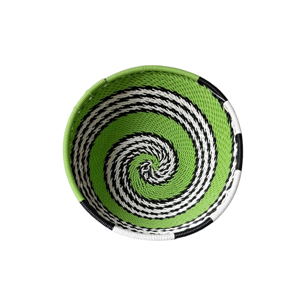 Woven Telephone Wire Bowl With Vibrant Swirls! Approximate diameter is 11.5cm.