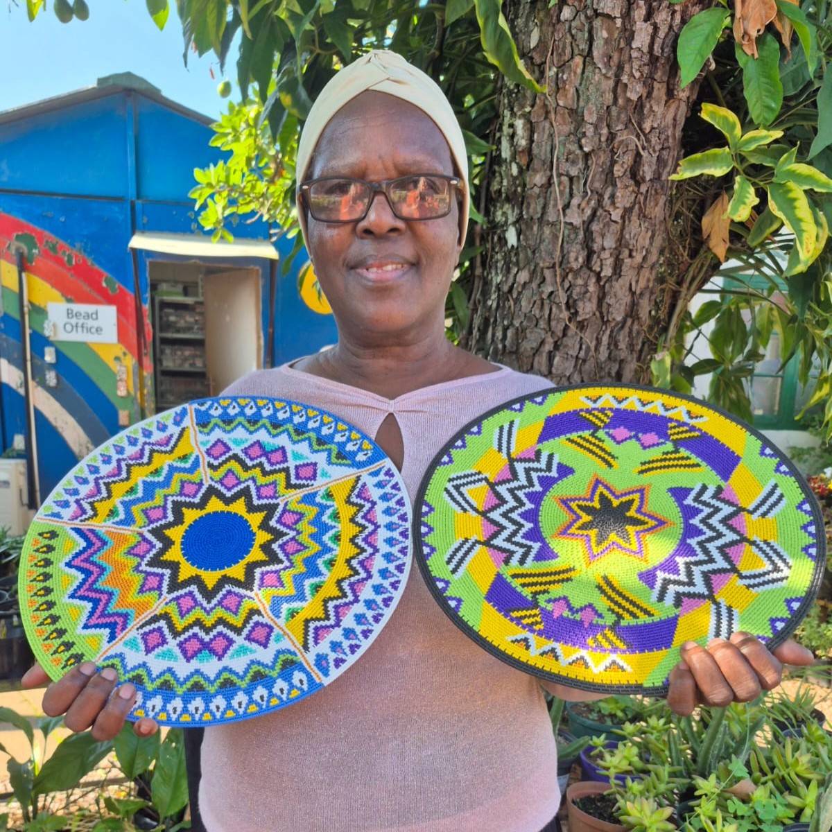 Tholakele is a talented hardwire basket weaver who has been suppling her hardwire work to Woza Moya since the beginning of 2024. She is able to create very large pieces with detailed patterns or pictures.