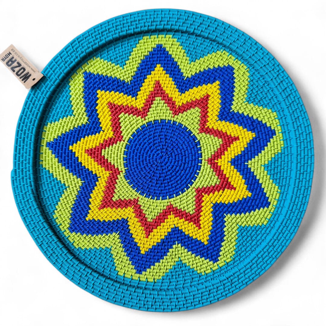 Hardwire flat platter in a geometric star design. The platter has a rim around the edge.