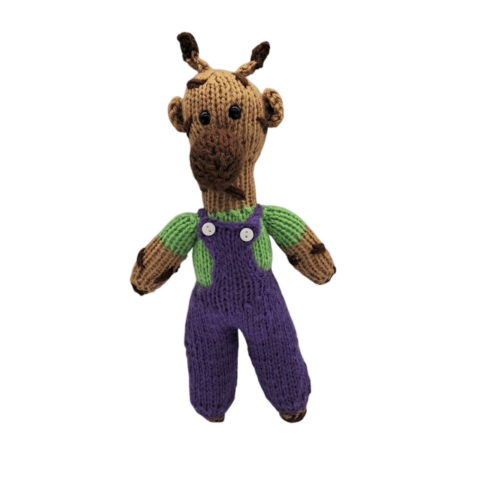 Buy cute little knitted animals at Woza Moya, this one is a Knitted Giraffe dressed in Blue created by 7 Rivers Outreach, the Giraffe’s height is 27,5 cm.