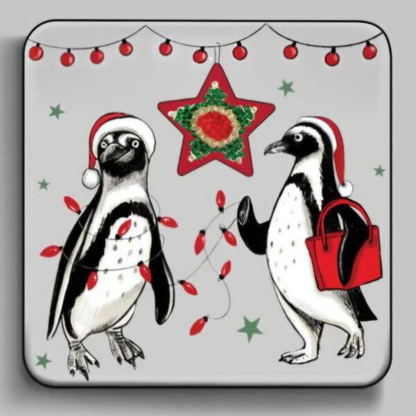 This festive coaster, measuring 10 x 10 x 0.5 cm, showcases a cute pair of penguins. It’s perfect for protecting your surfaces from drinks while keeping your decor fun and festive. It’s a must-have for the festive season.