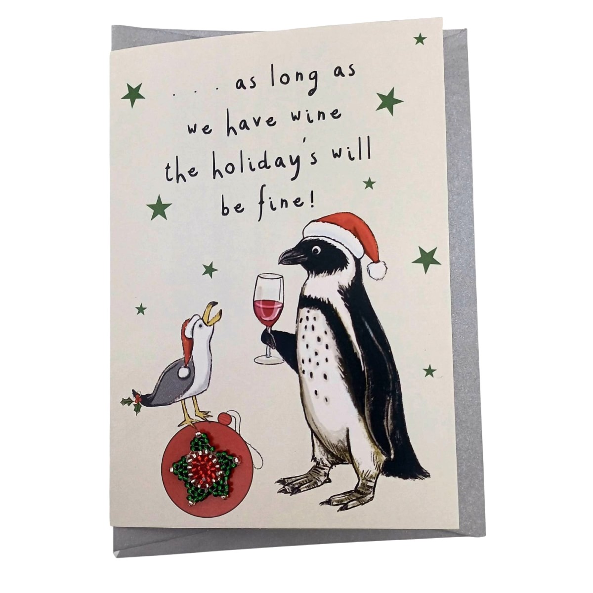 Penguin with Wine Christmas Card