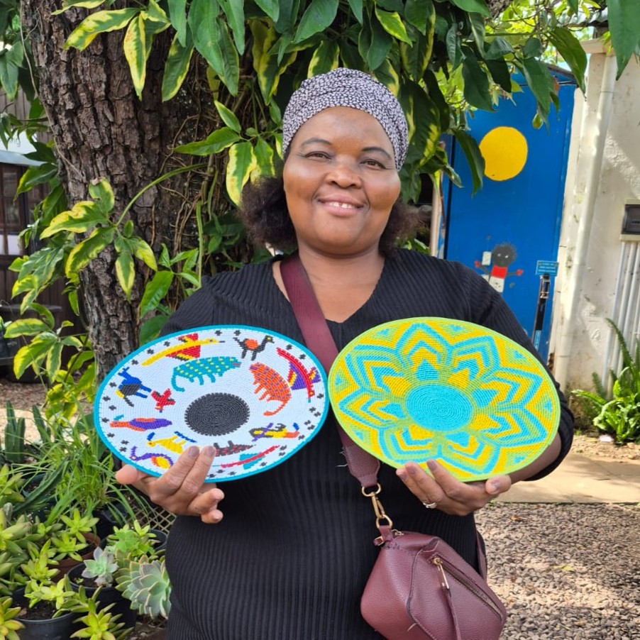 Nomvuselelo Mthwalo first came to Woza Moya when the African Art Centre closed down. Her designs are unique and often feature birds, insects and animals.