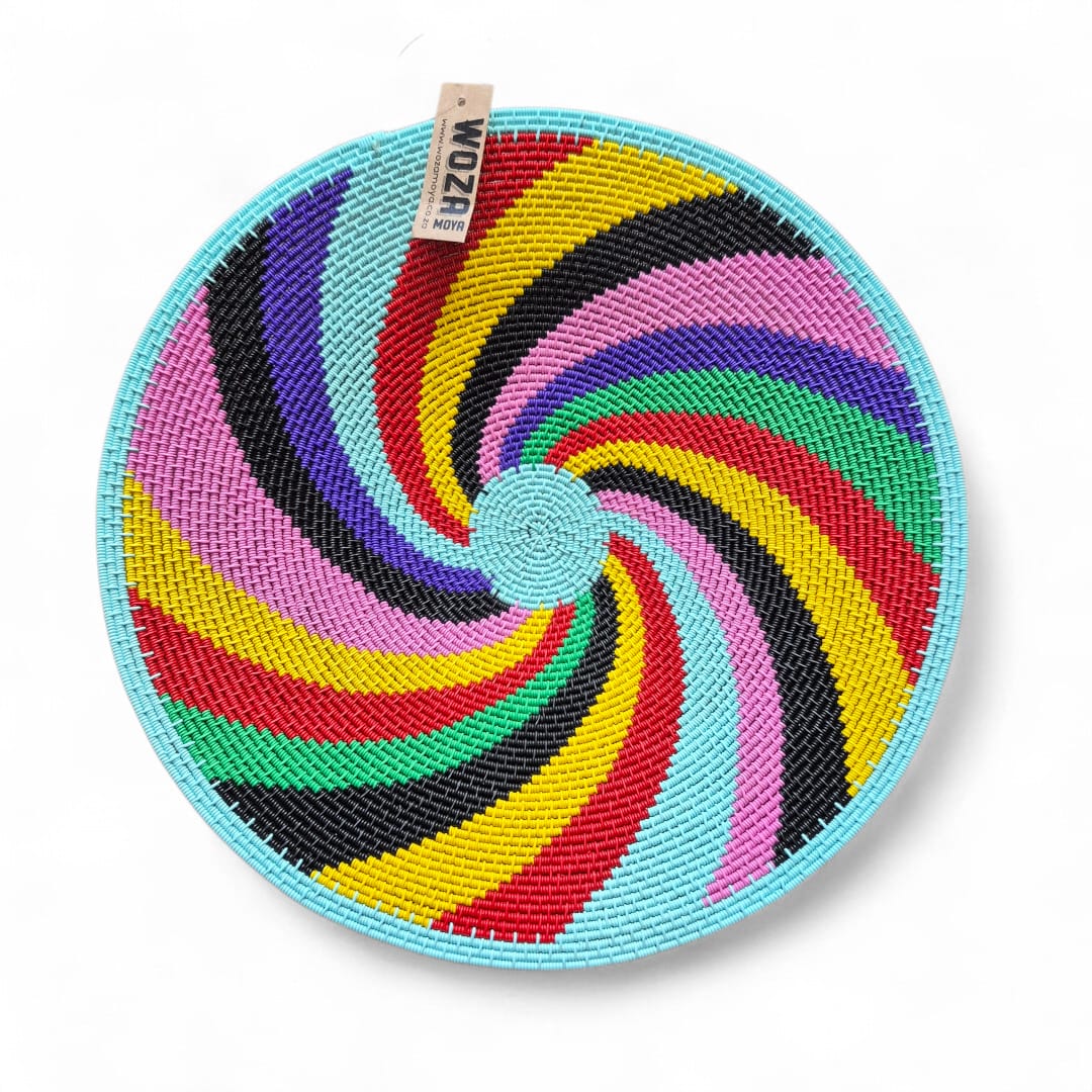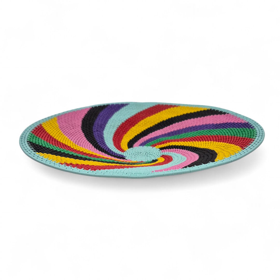 A beautiful hardwire bowl in swirls of bright colours.