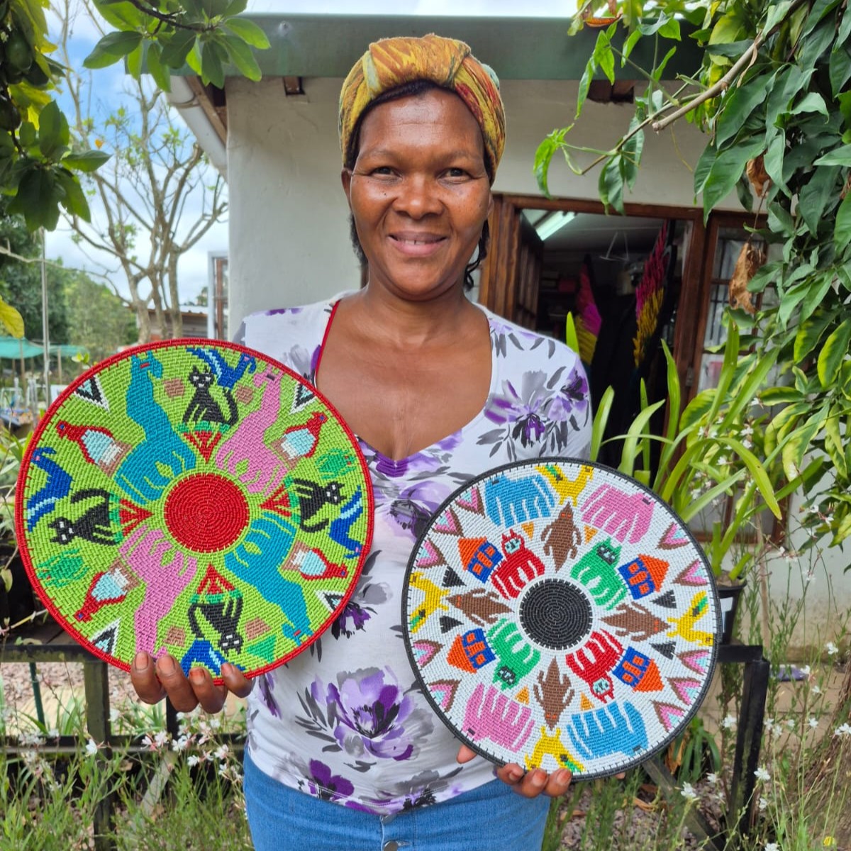 These shallow wire baskets are skillfully made by Zulu weavers in KwaZulu-Natal.