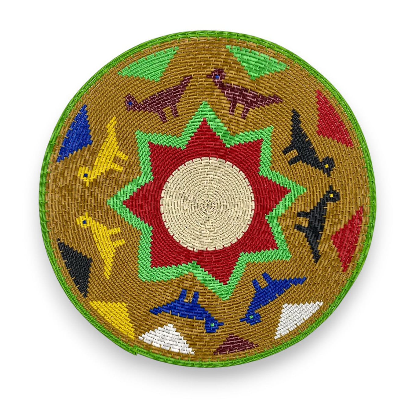 30.5cm shallow hardwire picture bowl by Sylvia Ludidi with an ochre background.