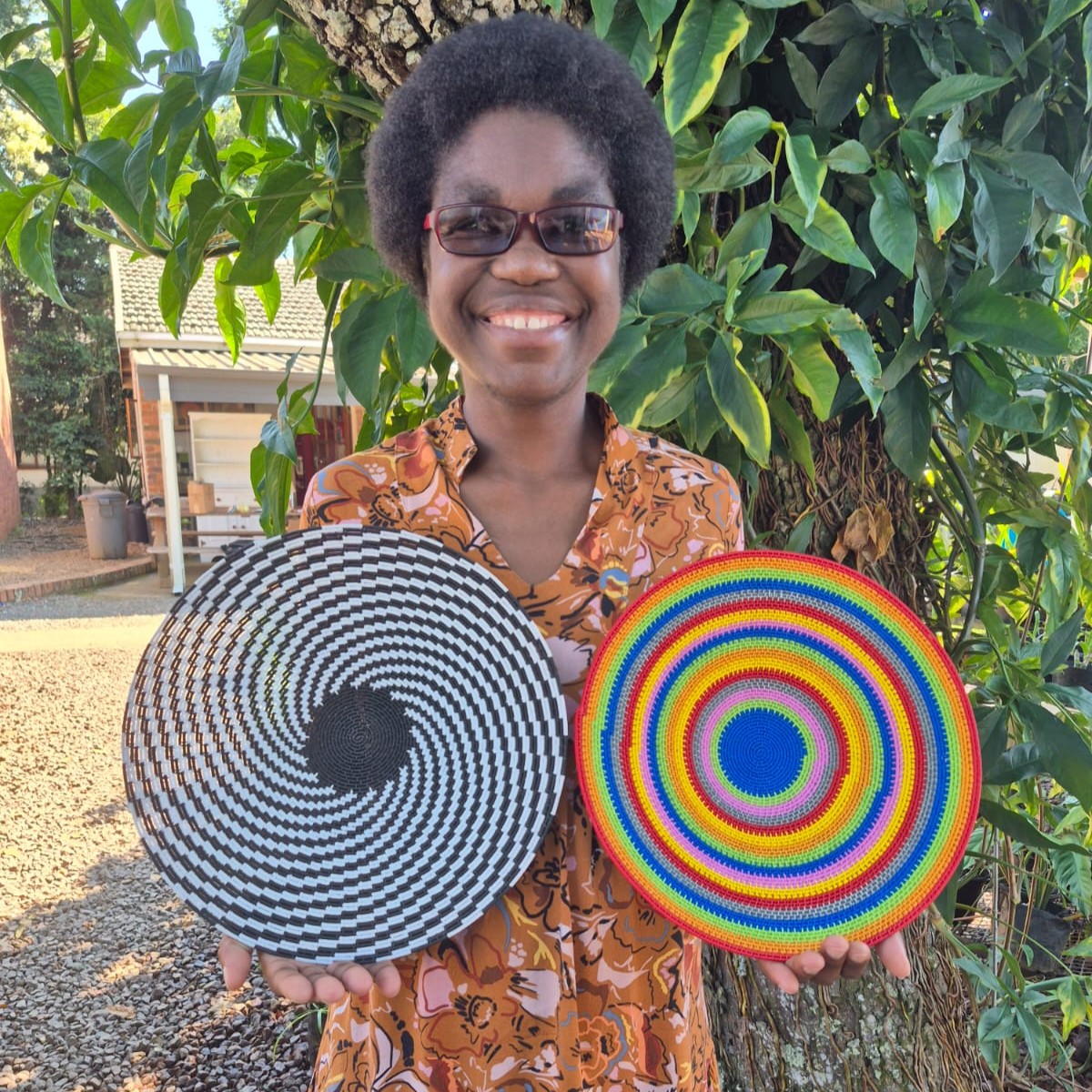 Thulisile is highly skilled and creates simple, eye-catching geometric baskets, using traditional Zulu weaving techniques to create contemporary home decor. Perfect for both wall and surface decor.