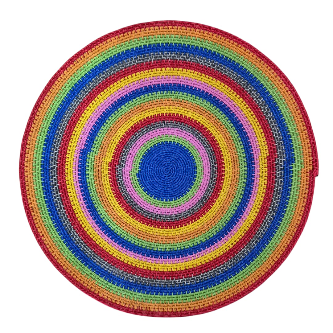Shallow hardwire 32.5cm basket in bands of bright colours.