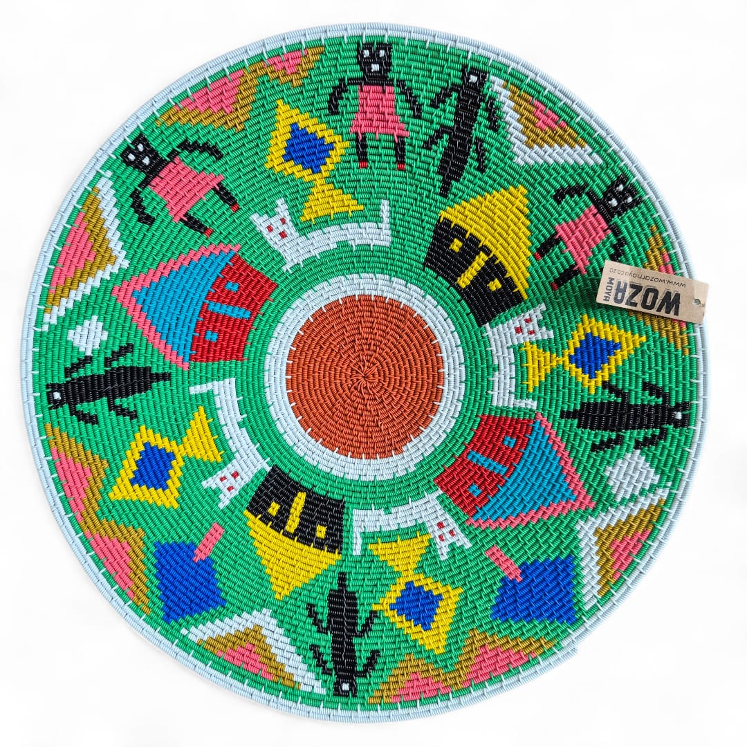 These shallow wire baskets are skillfully made by Zulu weavers in KwaZulu-Natal. They can be used as a table or wall decor.