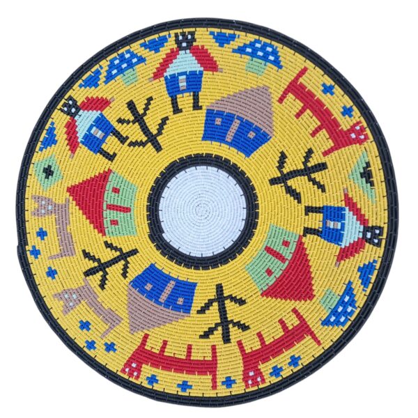 Traditional Zulu hardwire story bowl depicting a rural scene.