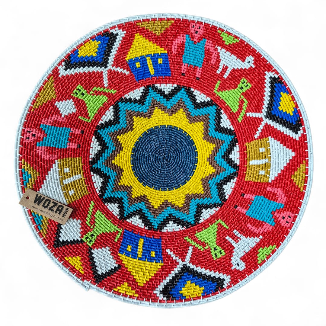 These shallow wire baskets are skillfully made by Zulu weavers in KwaZulu-Natal. They can be used as a table or wall decor.