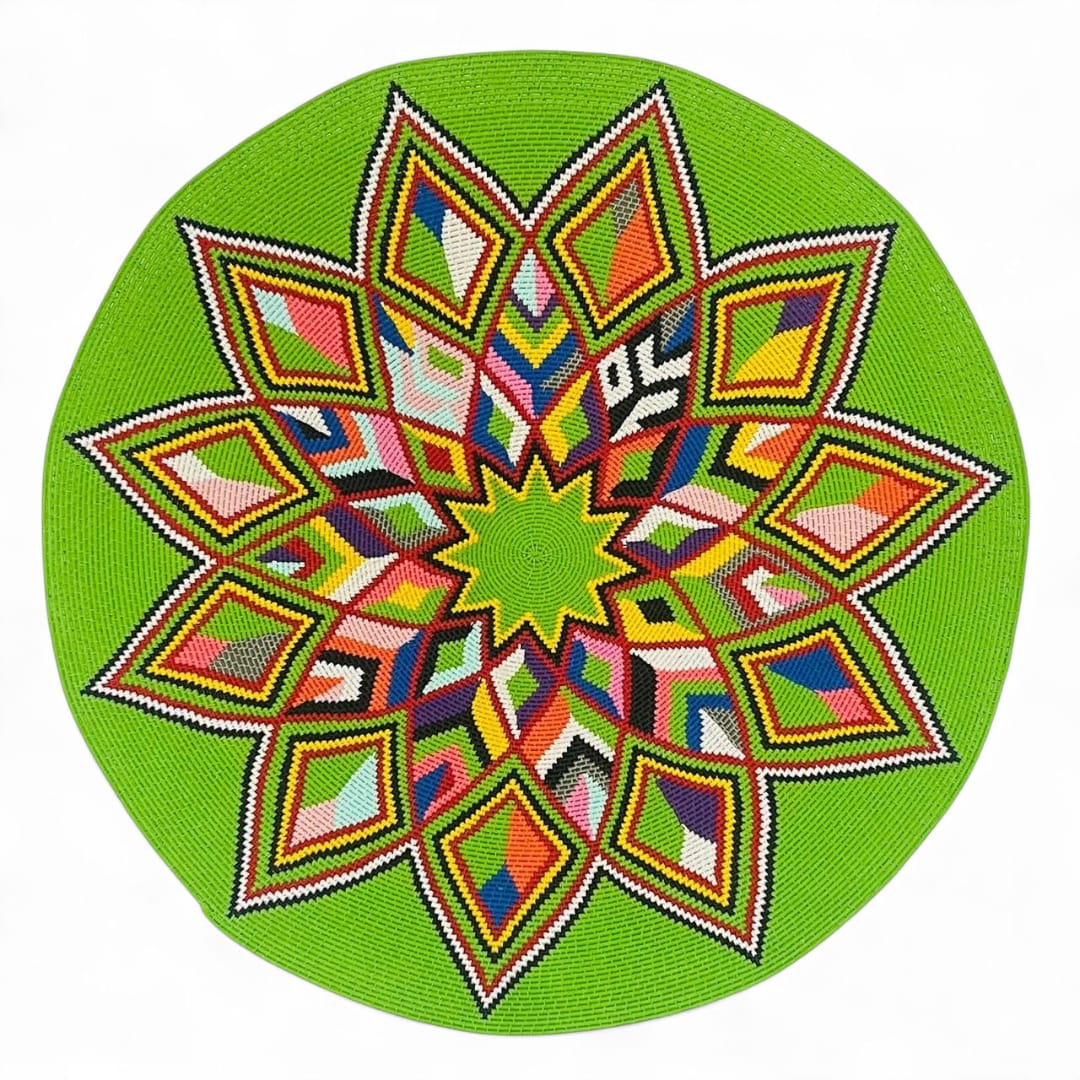 Vibrant green hardwire bowl in a bold geometric design. A masterpiece by Busisiswe Mayise.