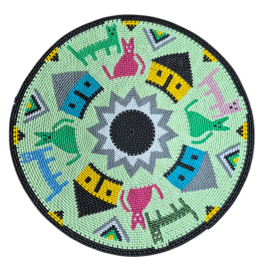 This 33.5cm diameter shallow hardwire basket was hand-woven by Tholakele Dlamini.