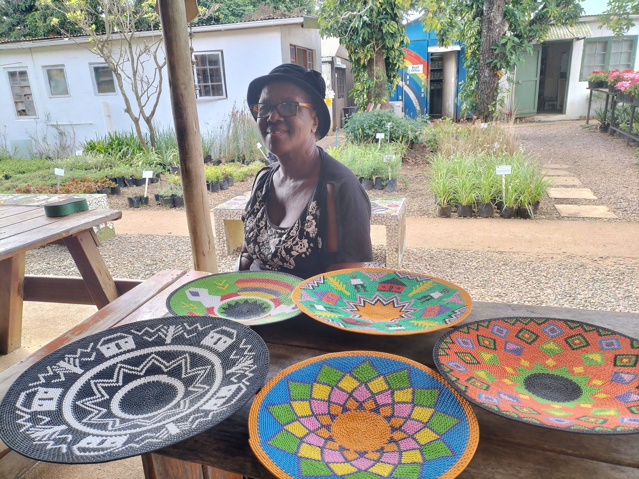 Tholakele is a talented hardwire basket weaver who has been suppling her hardwire baskets to Woza Moya since the beginning of 2024. She is able to create very large baskets with beautiful patterns.
