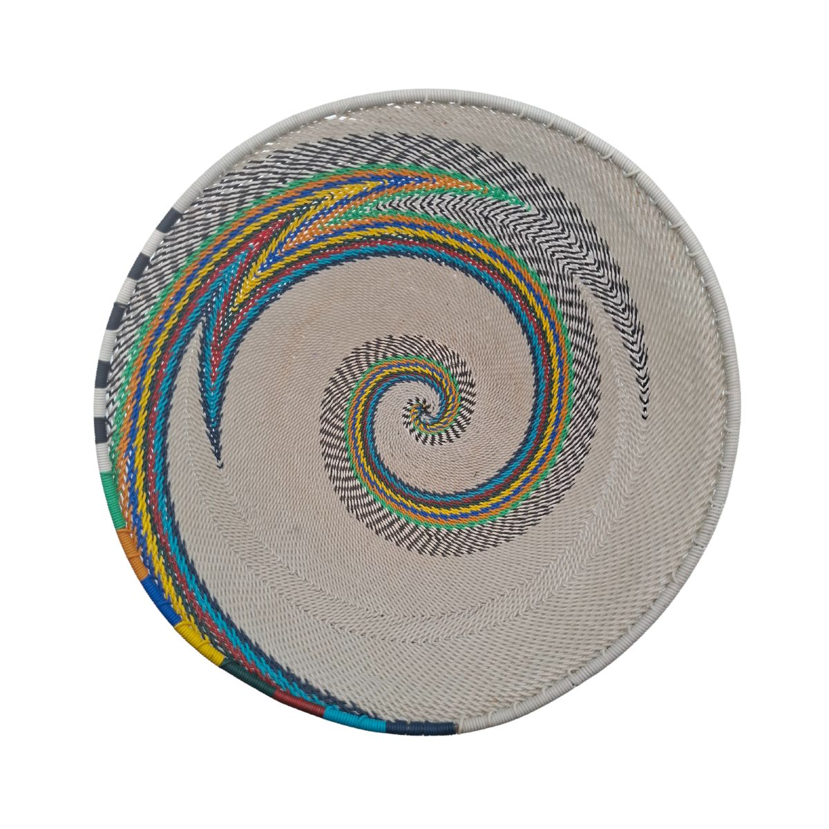Decorate your home with this vibrant woven telephone wire bowl.