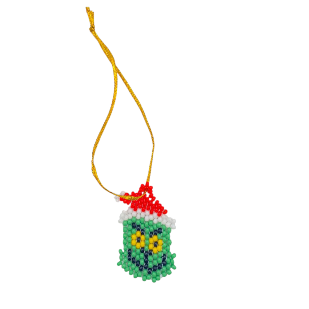 Add a touch of mischief to your Christmas with this tiny, beaded Grinch ornament. Measuring 3.5cm x 2cm x 0.2cm, this handcrafted decoration captures the Grinch’s playful yet grumpy charm in detail.
