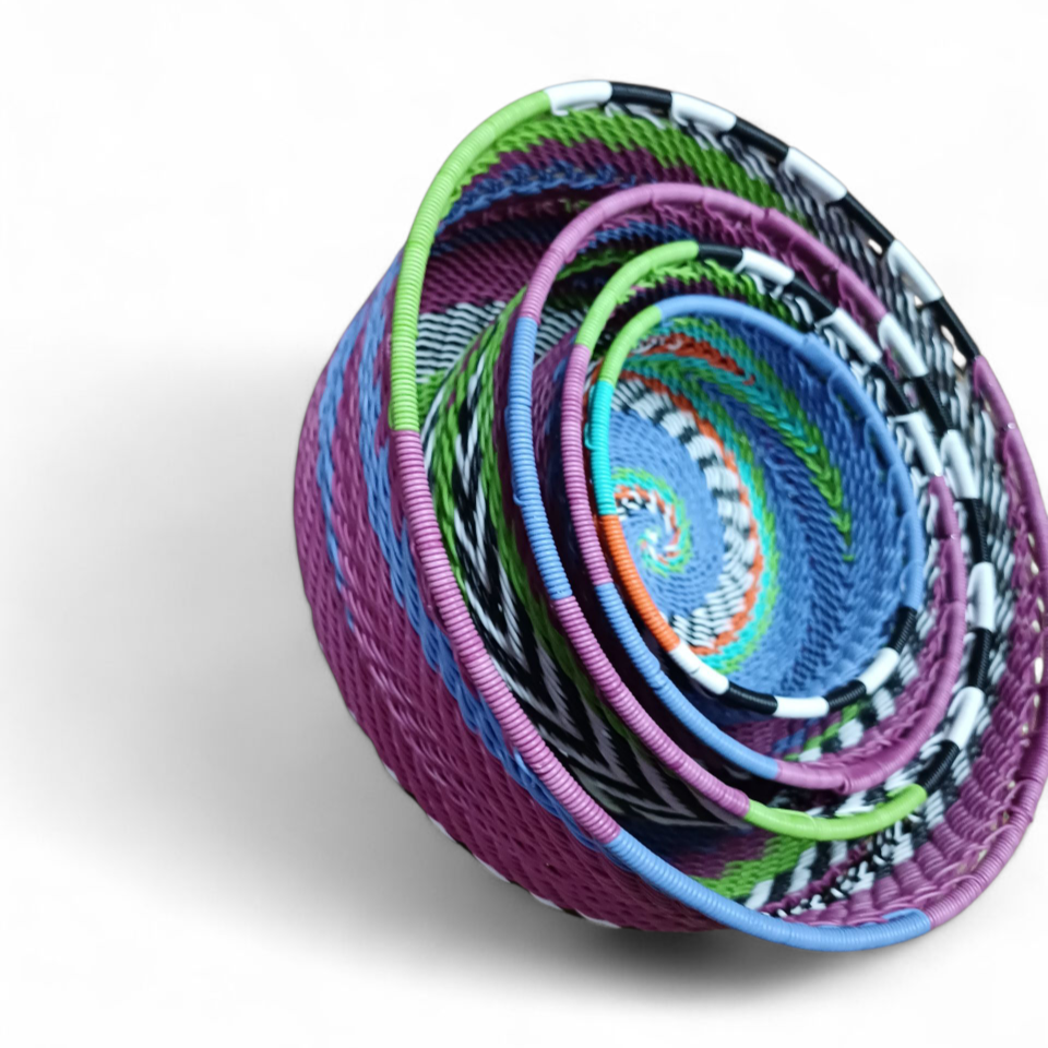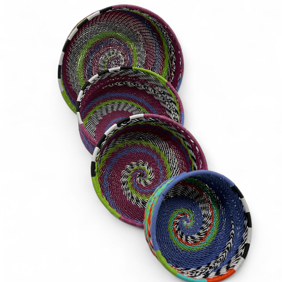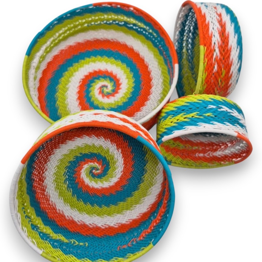 Set of 4 scoobie wire snack bowls. The biggest bowl is 16cm in diameter.