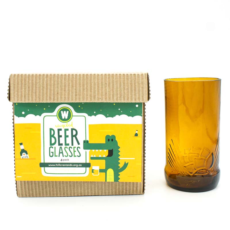 Pack of 4 hand cut beer bottle drinking glasses packed in a handmade box