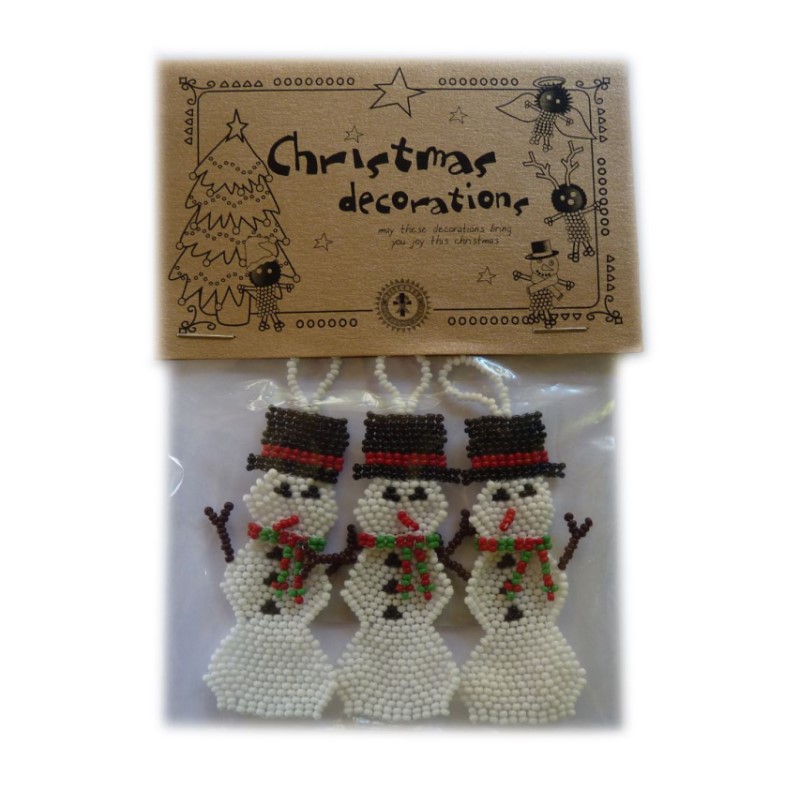 This picture is of a pack of 3 tall beaded snowmen, but we do sell them in single units too! A frosty Christmas ornament to hang on your tree.